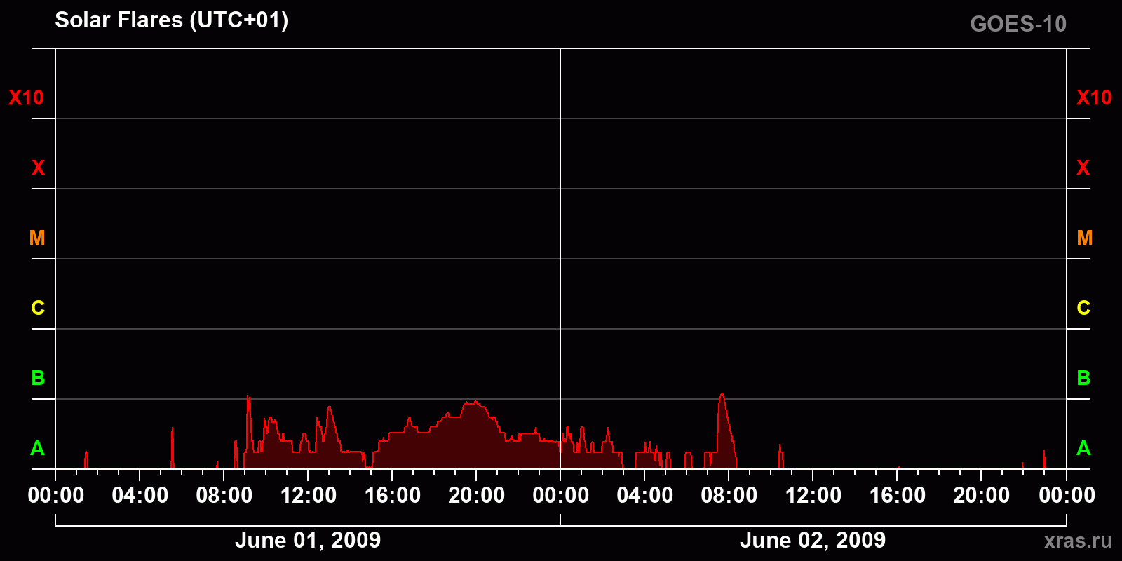 Chart of solar activity from Jun 01, 2009 to Jun 02, 2009