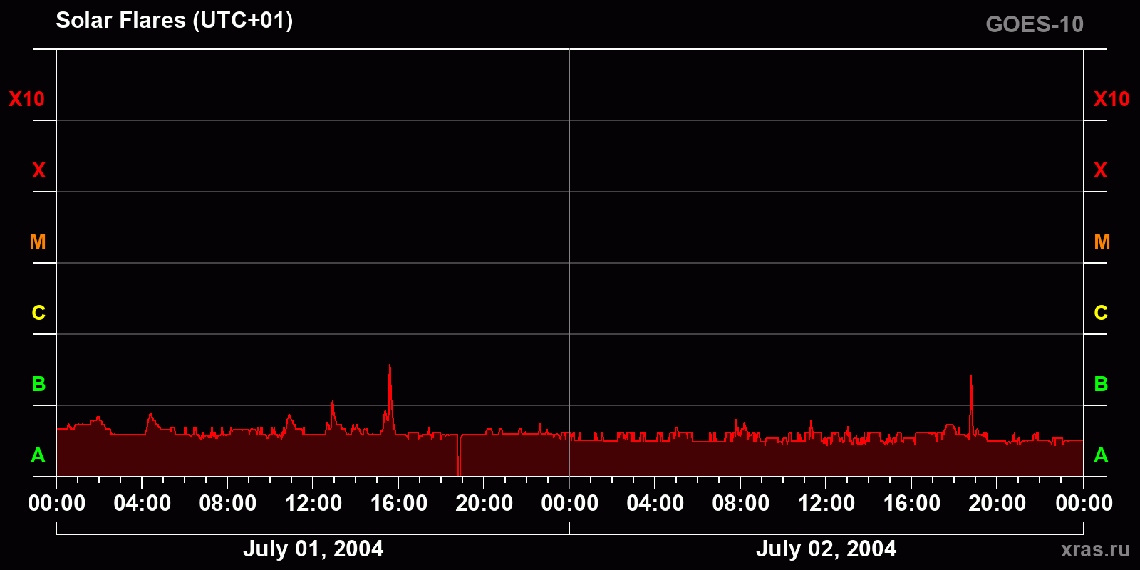 Chart of solar activity from Jul 01, 2004 to Jul 02, 2004