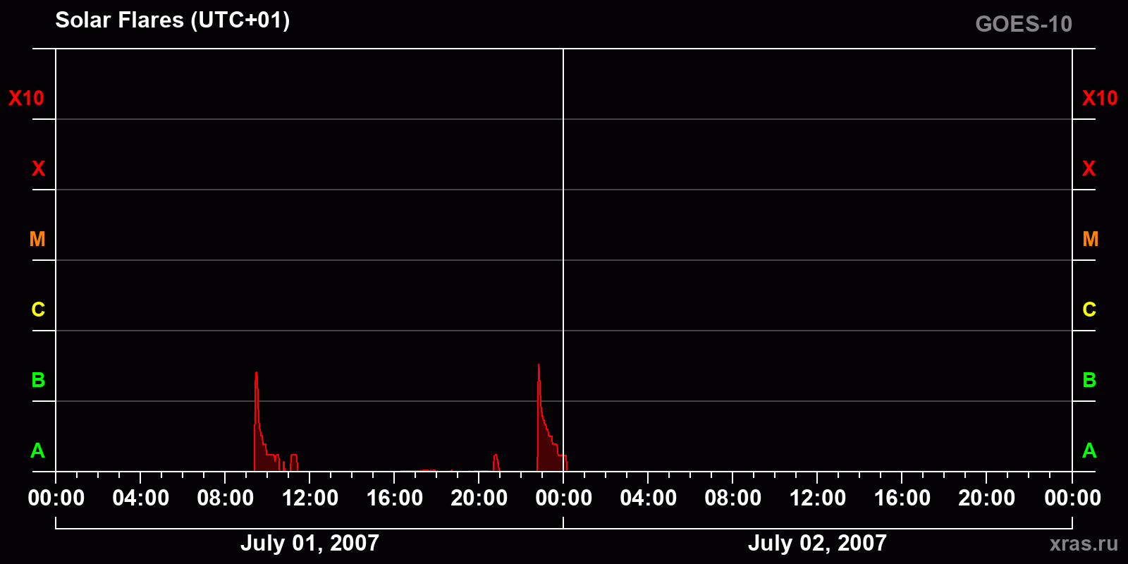 Chart of solar activity from Jul 01, 2007 to Jul 02, 2007