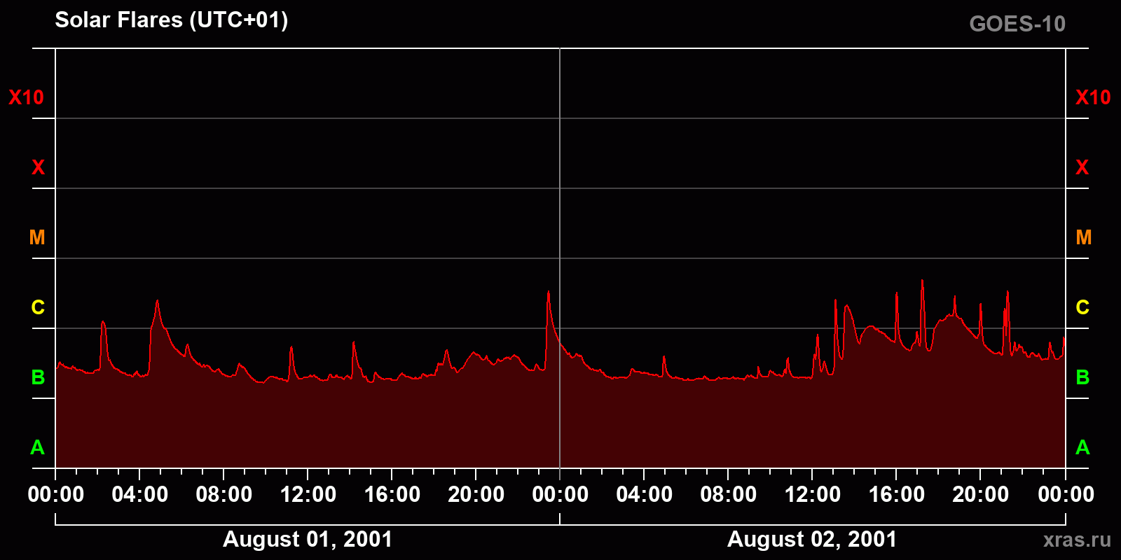 Chart of solar activity from Aug 01, 2001 to Aug 02, 2001
