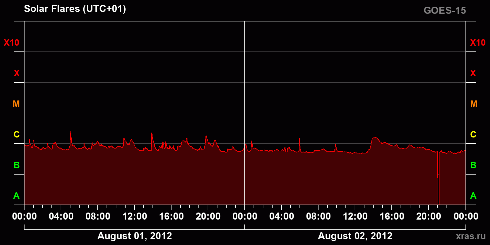 Chart of solar activity from Aug 01, 2012 to Aug 02, 2012