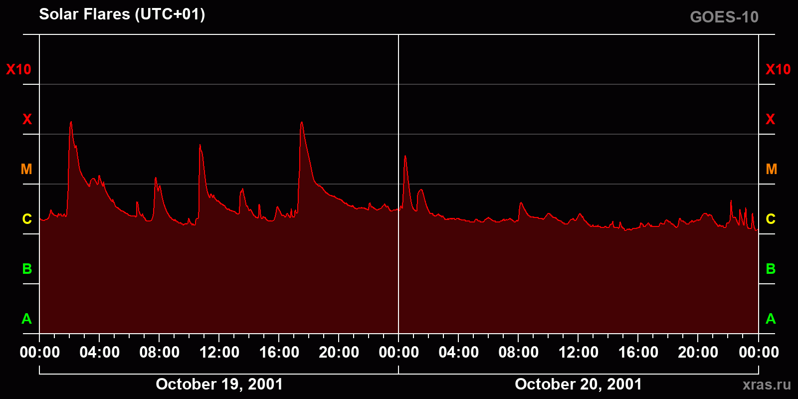 Chart of solar activity from Oct 19, 2001 to Oct 20, 2001