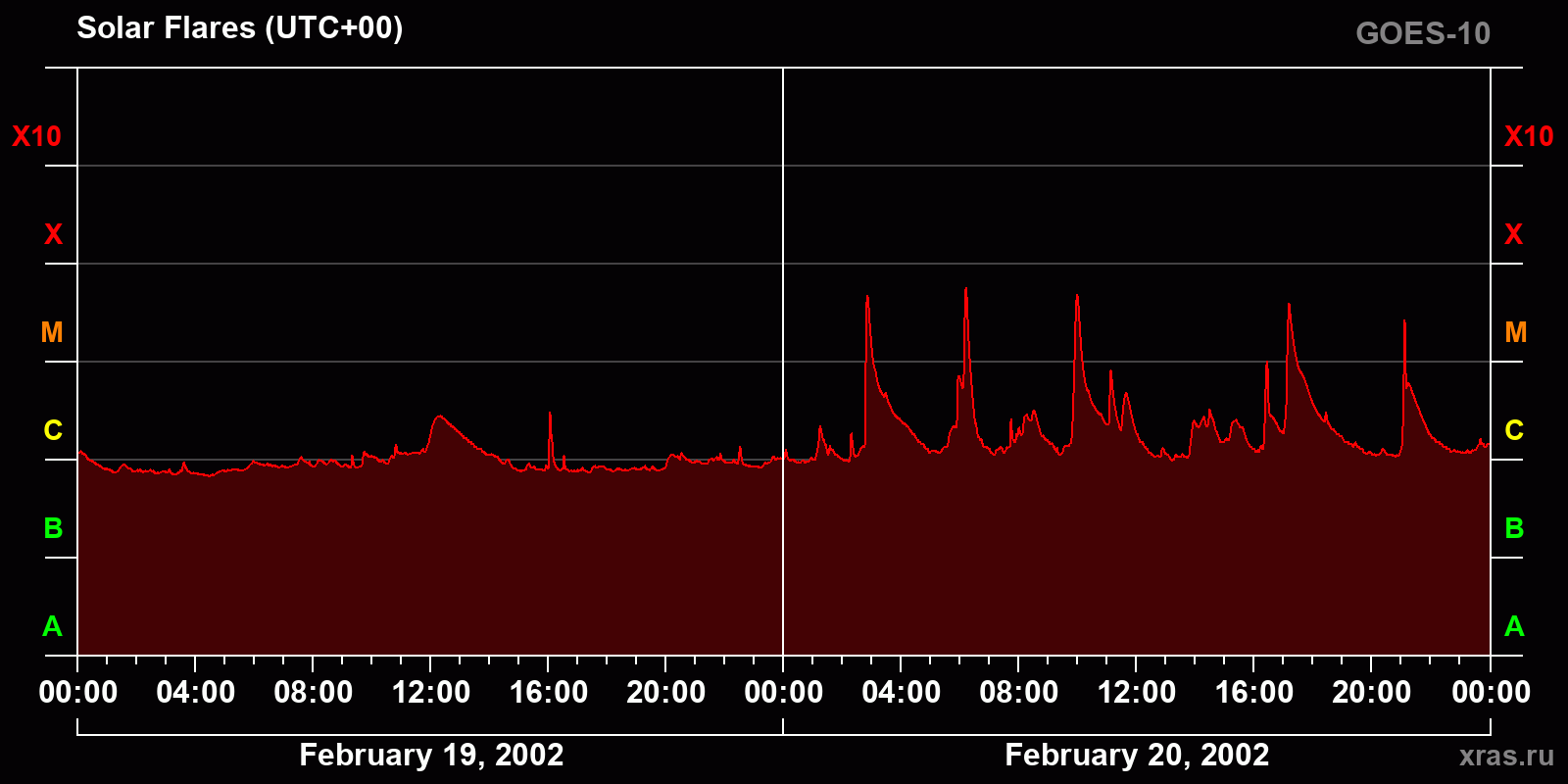 Chart of solar activity from Feb 19, 2002 to Feb 20, 2002