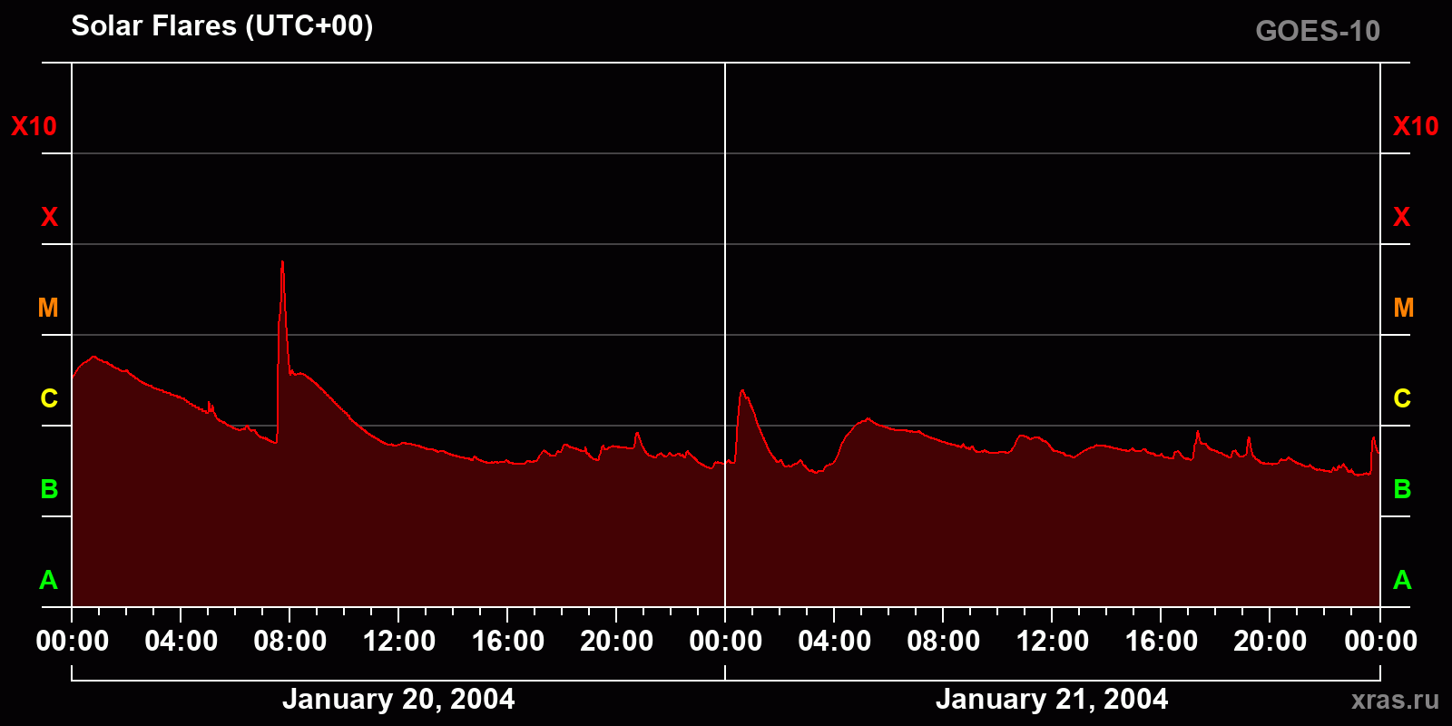 Chart of solar activity from Jan 20, 2004 to Jan 21, 2004