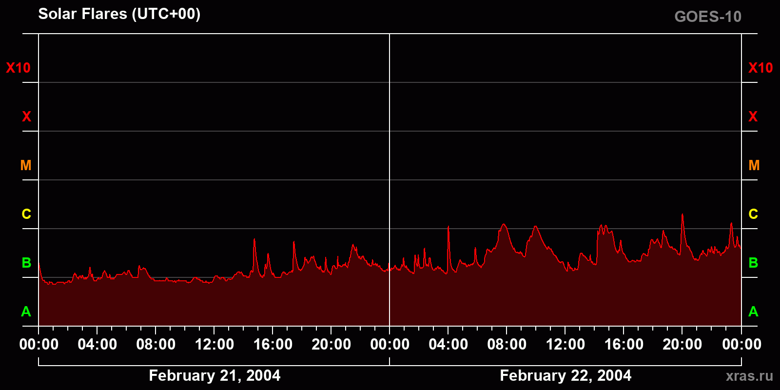 Chart of solar activity from Feb 21, 2004 to Feb 22, 2004