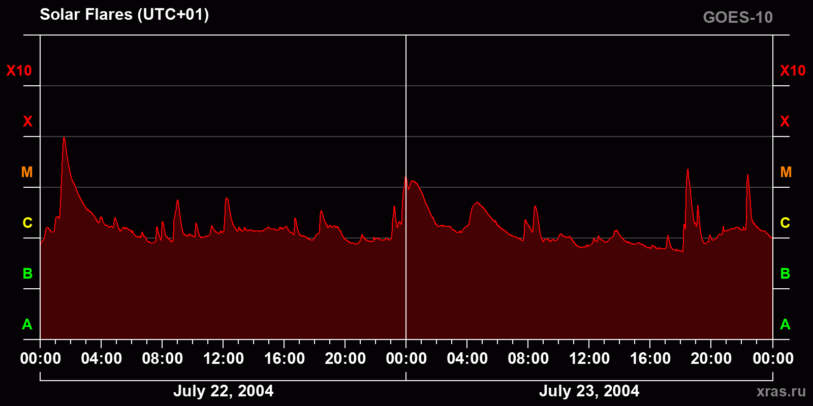 Chart of solar activity from Jul 22, 2004 to Jul 23, 2004