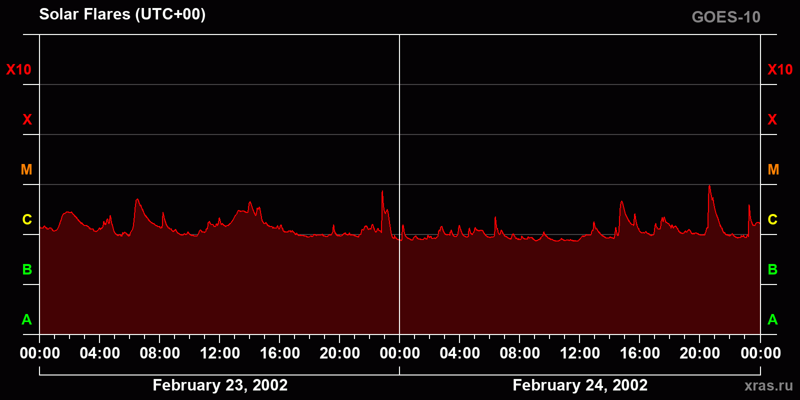 Chart of solar activity from Feb 23, 2002 to Feb 24, 2002