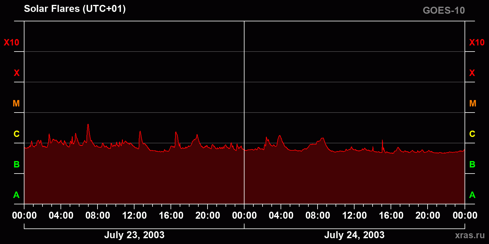 Chart of solar activity from Jul 23, 2003 to Jul 24, 2003