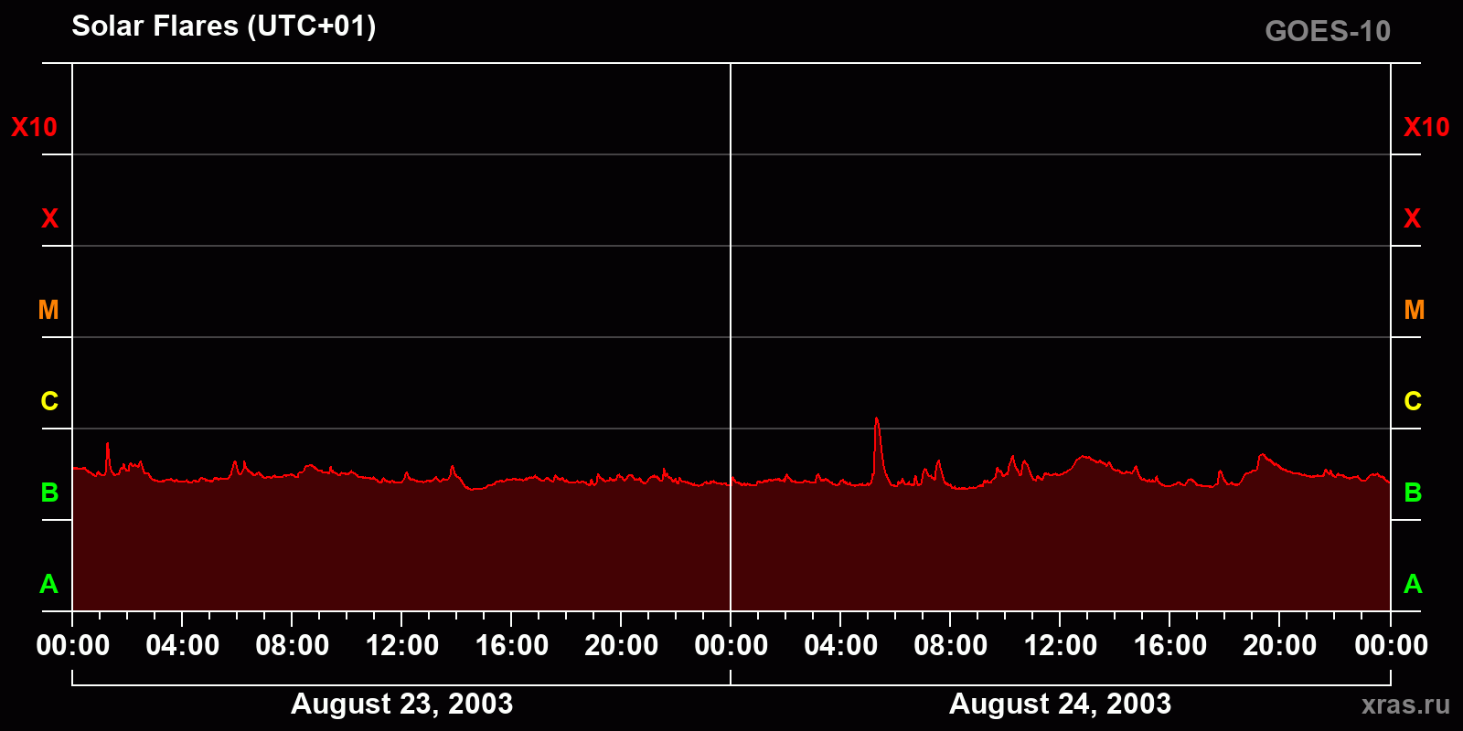 Chart of solar activity from Aug 23, 2003 to Aug 24, 2003