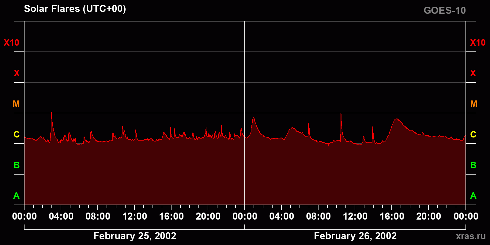 Chart of solar activity from Feb 25, 2002 to Feb 26, 2002
