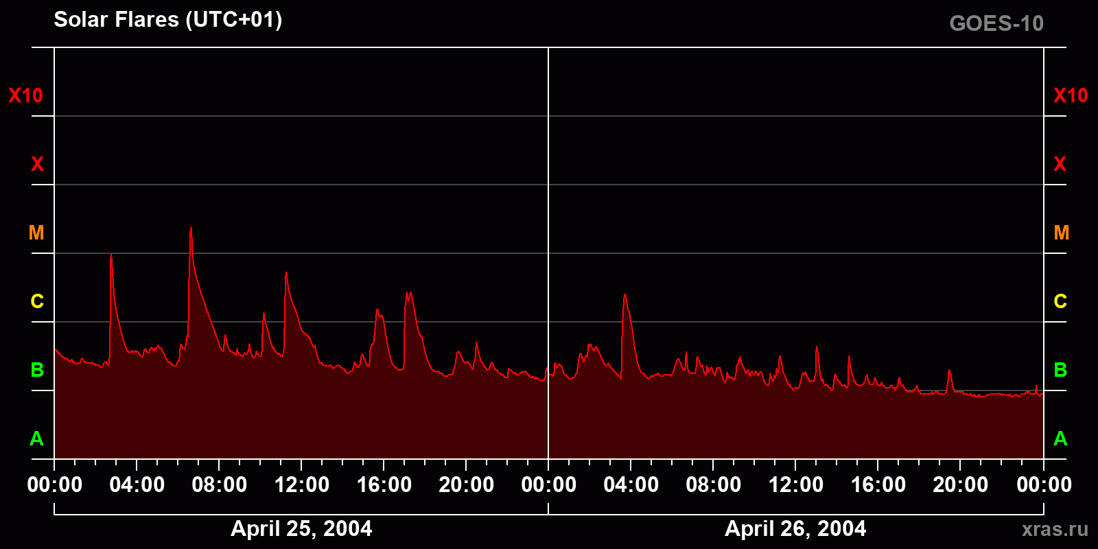 Chart of solar activity from Apr 25, 2004 to Apr 26, 2004