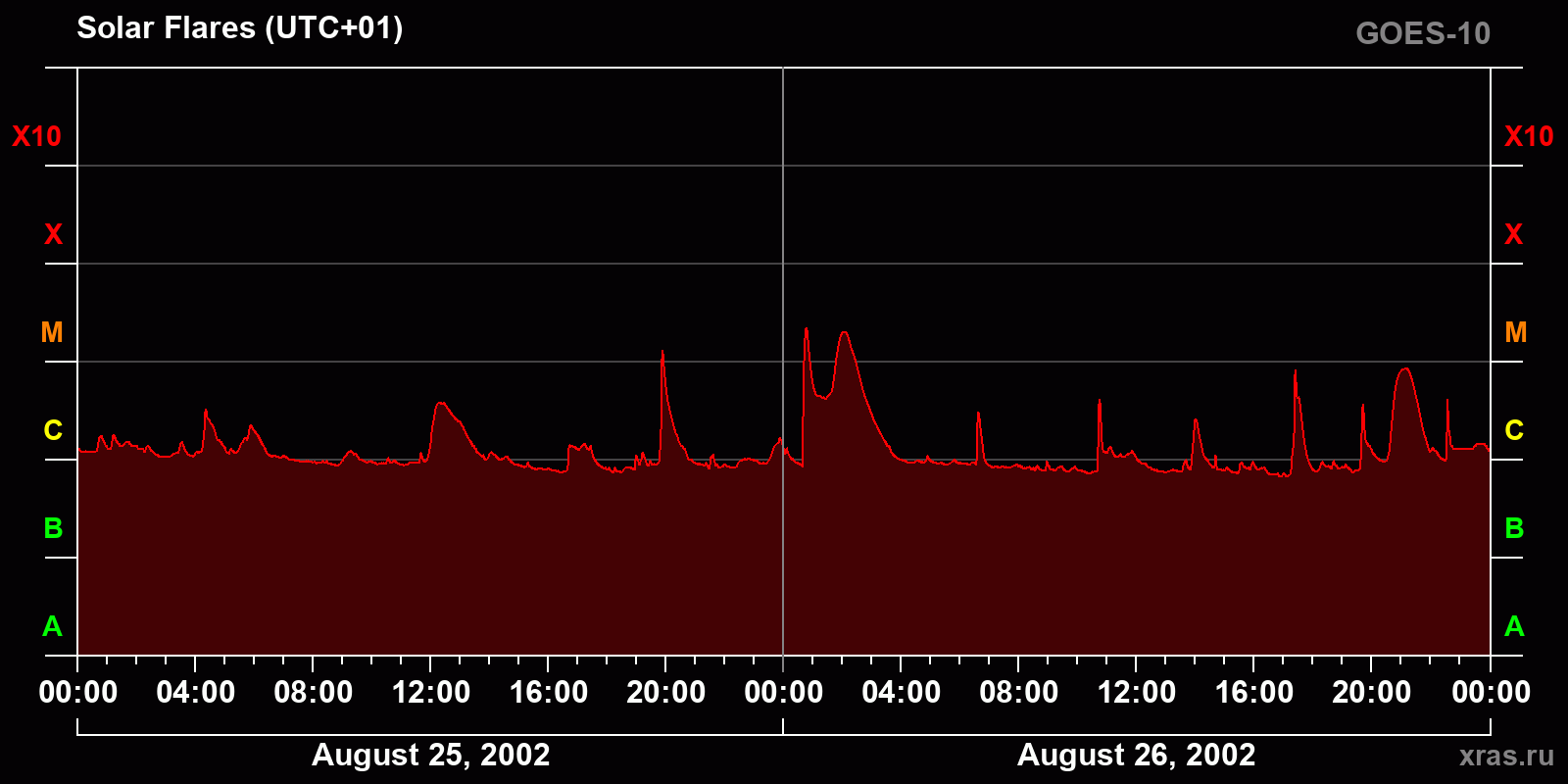 Chart of solar activity from Aug 25, 2002 to Aug 26, 2002