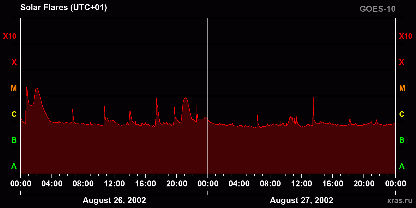 Chart of solar activity from Aug 26, 2002 to Aug 27, 2002