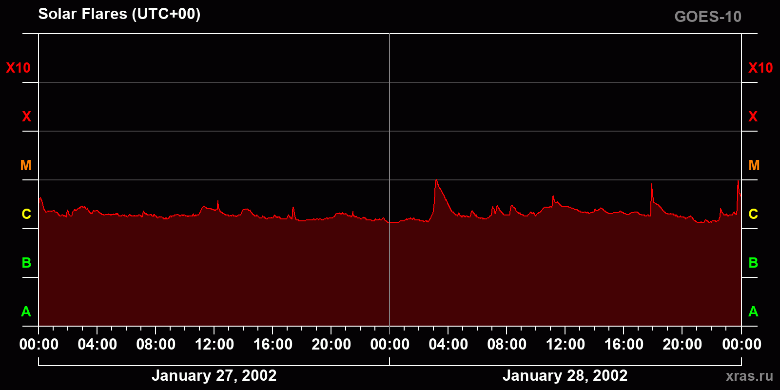 Chart of solar activity from Jan 27, 2002 to Jan 28, 2002