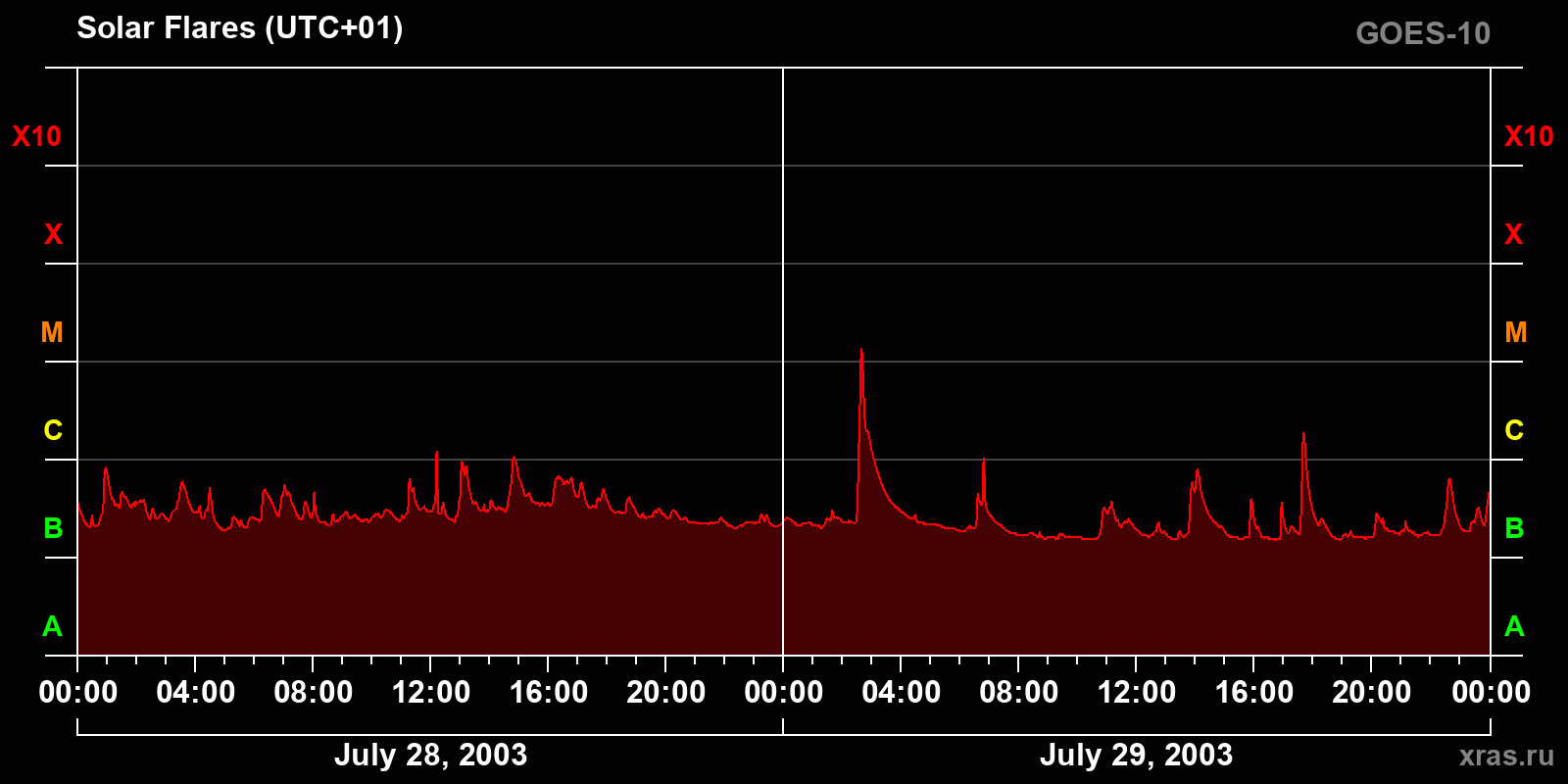 Chart of solar activity from Jul 28, 2003 to Jul 29, 2003
