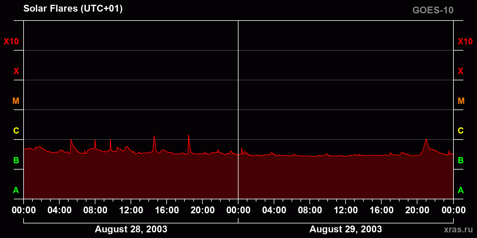 Chart of solar activity from Aug 28, 2003 to Aug 29, 2003