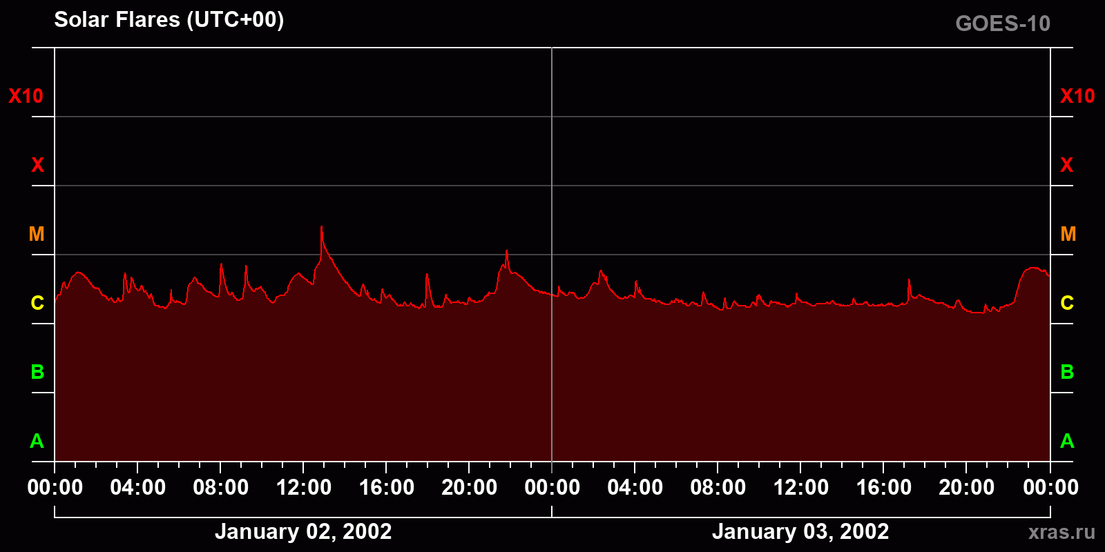 Chart of solar activity from Jan 02, 2002 to Jan 03, 2002