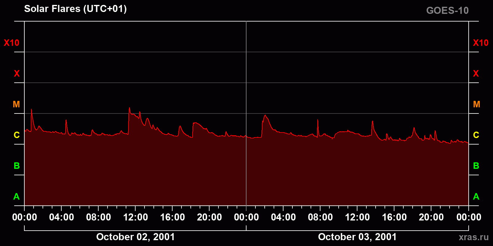 Chart of solar activity from Oct 02, 2001 to Oct 03, 2001
