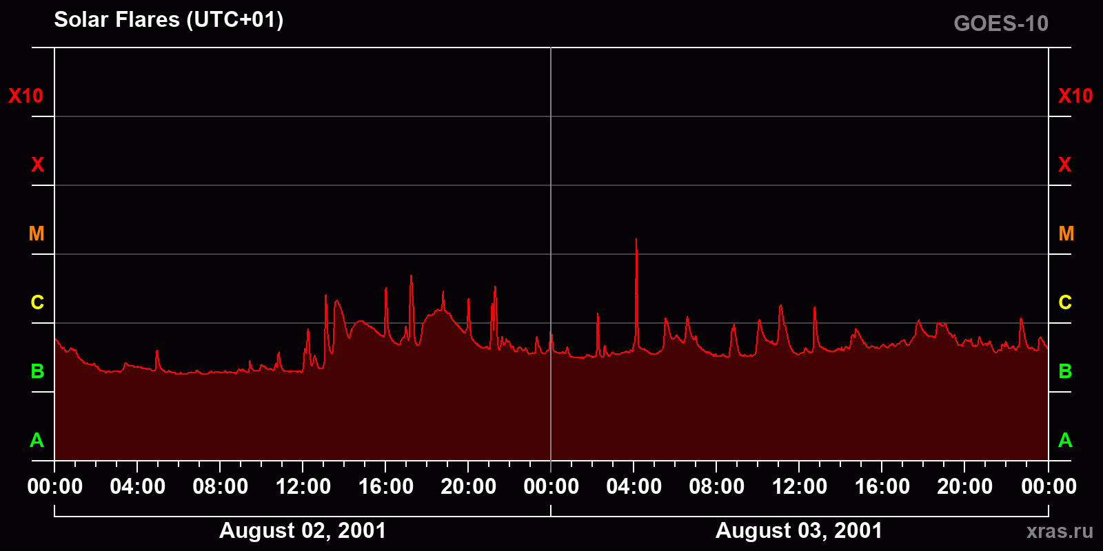Chart of solar activity from Aug 02, 2001 to Aug 03, 2001