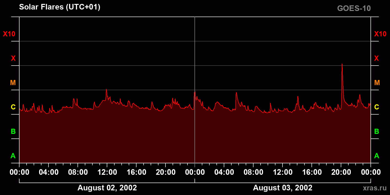 Chart of solar activity from Aug 02, 2002 to Aug 03, 2002