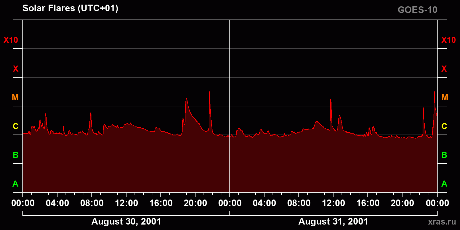 Chart of solar activity from Aug 30, 2001 to Aug 31, 2001