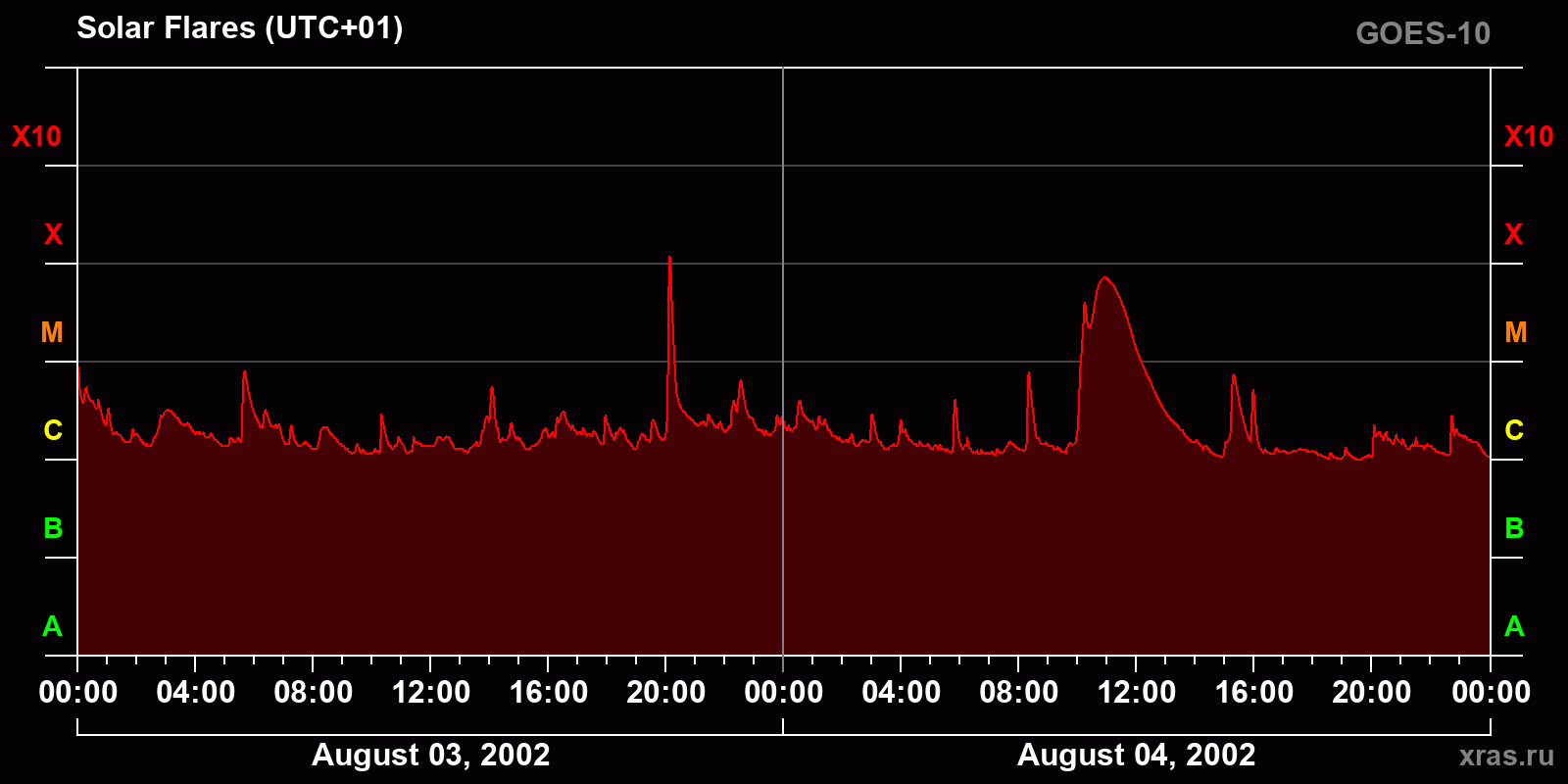 Chart of solar activity from Aug 03, 2002 to Aug 04, 2002