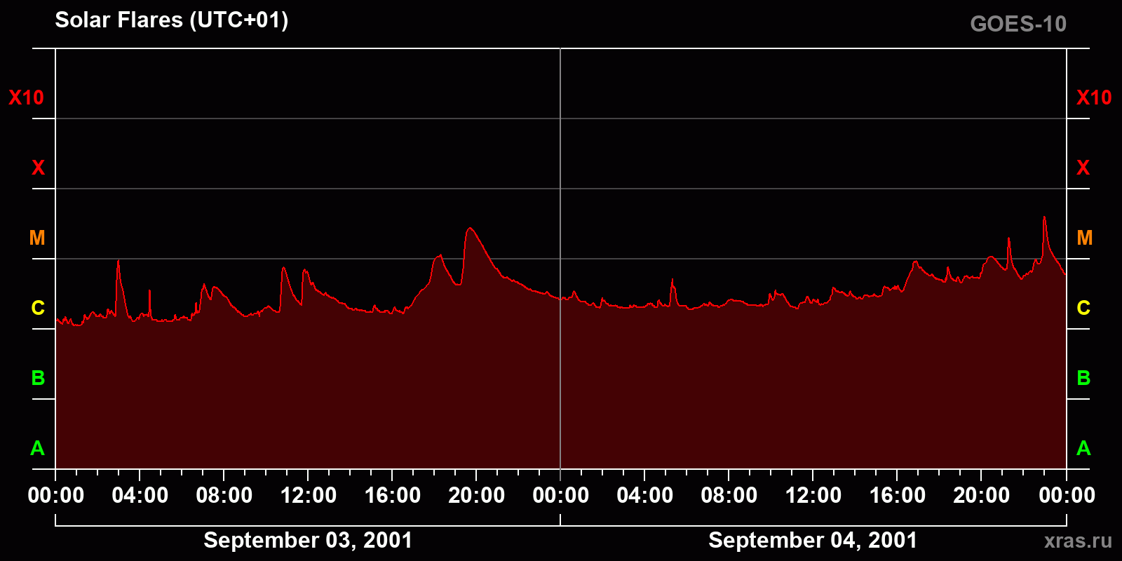 Chart of solar activity from Sep 03, 2001 to Sep 04, 2001