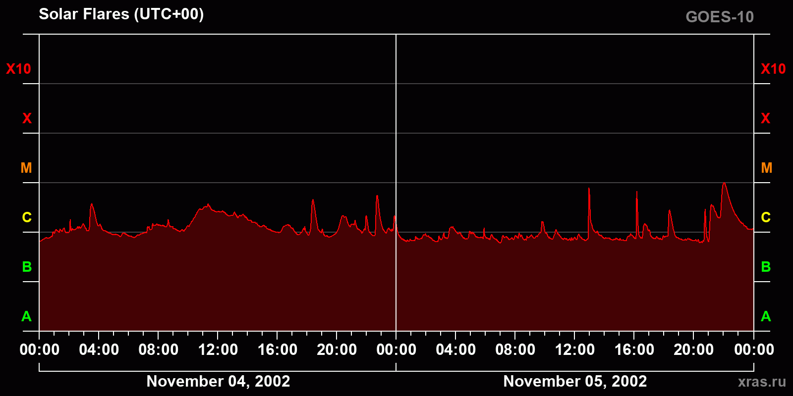 Chart of solar activity from Nov 04, 2002 to Nov 05, 2002