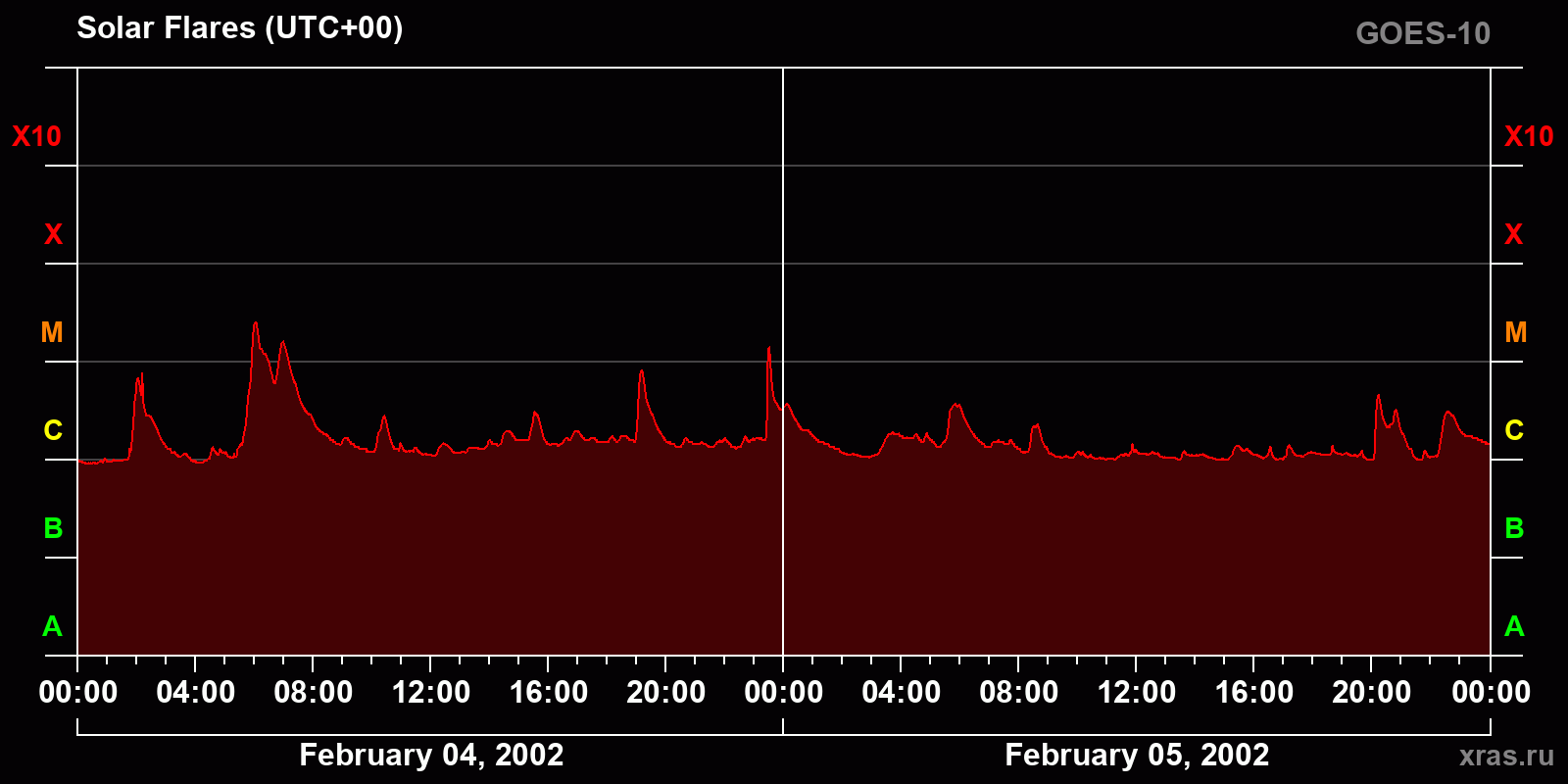 Chart of solar activity from Feb 04, 2002 to Feb 05, 2002