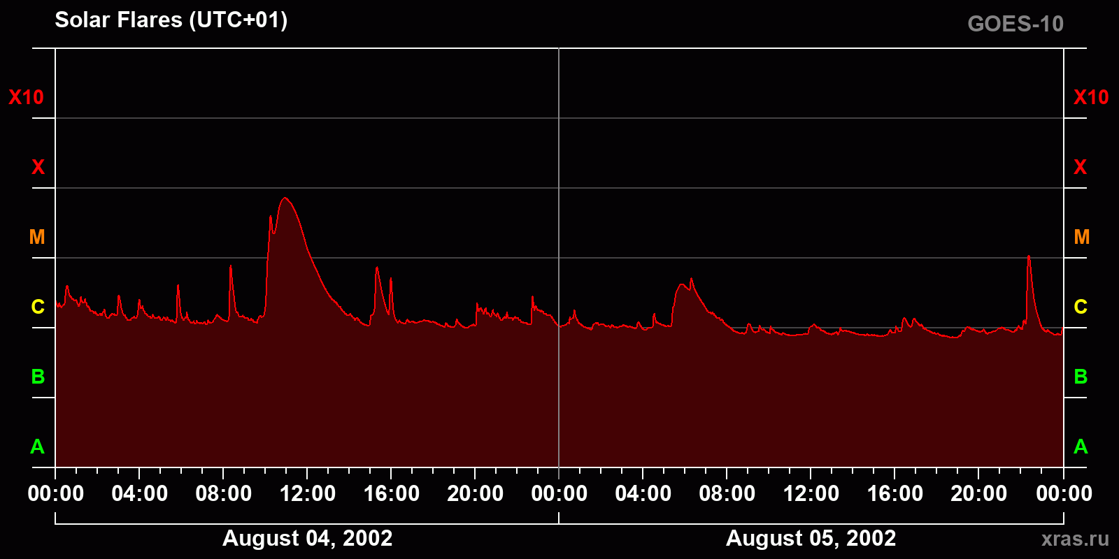 Chart of solar activity from Aug 04, 2002 to Aug 05, 2002
