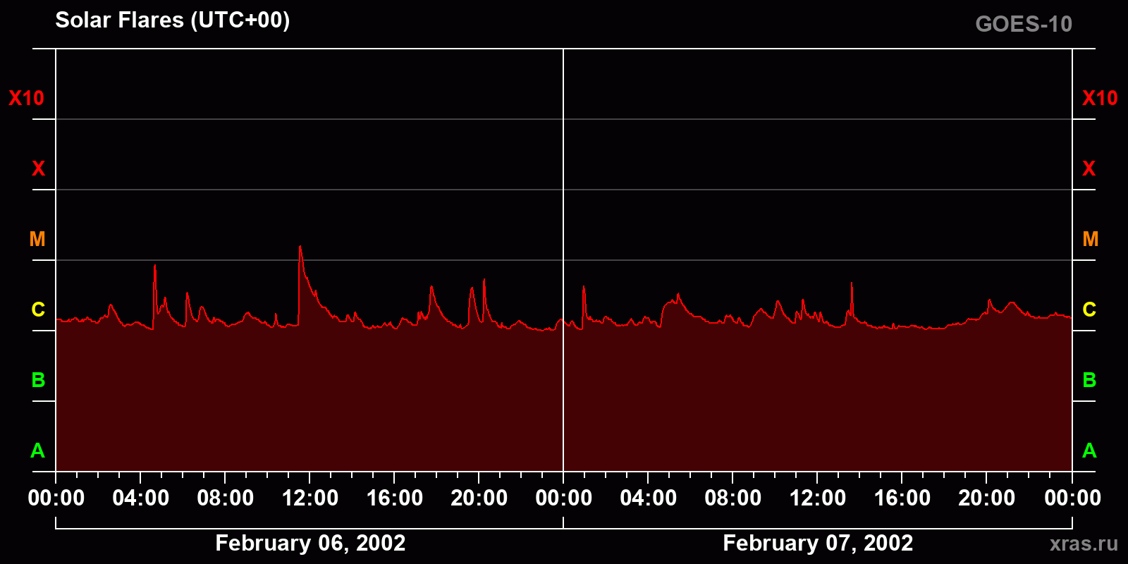 Chart of solar activity from Feb 06, 2002 to Feb 07, 2002