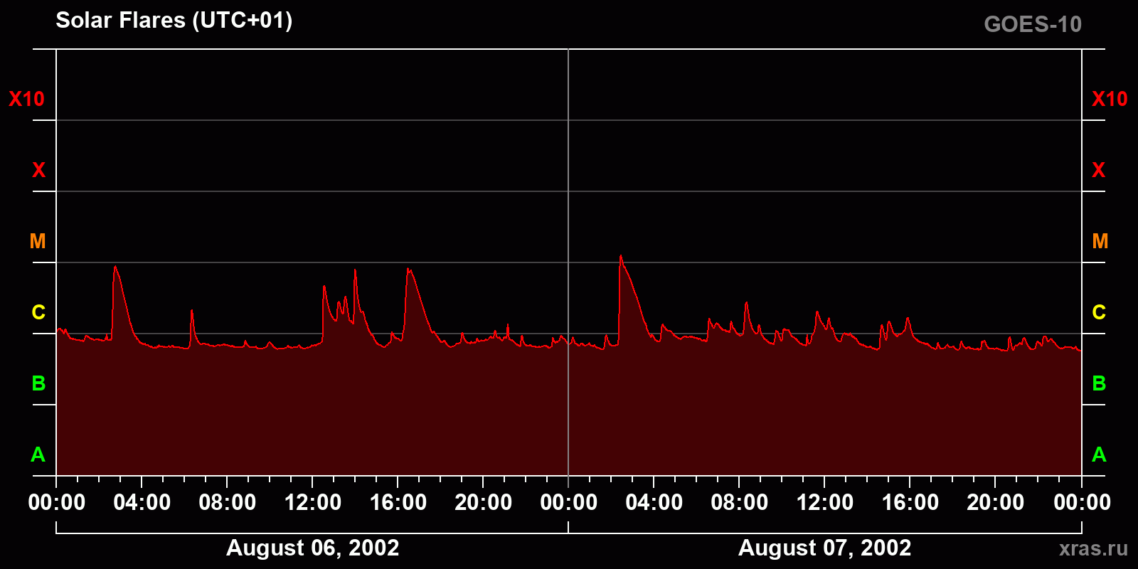 Chart of solar activity from Aug 06, 2002 to Aug 07, 2002