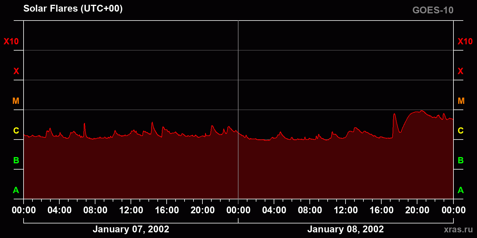Chart of solar activity from Jan 07, 2002 to Jan 08, 2002