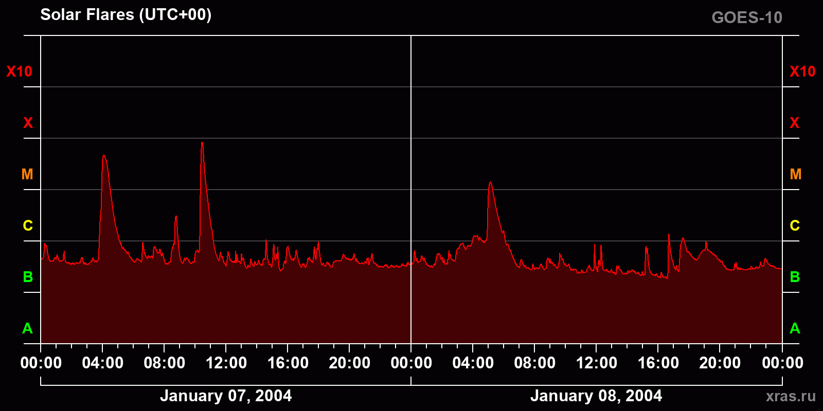 Chart of solar activity from Jan 07, 2004 to Jan 08, 2004