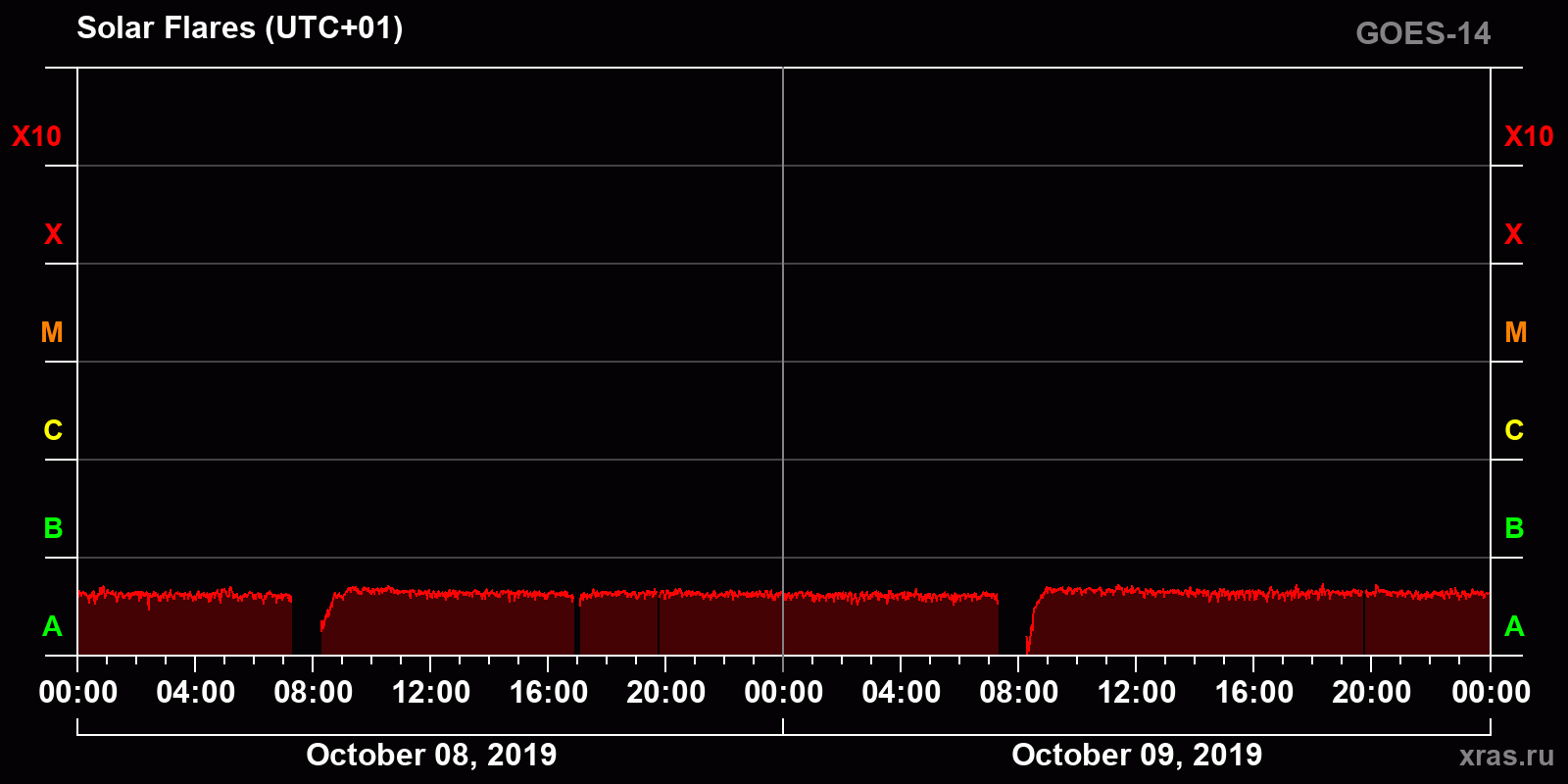 Chart of solar activity from Oct 08, 2019 to Oct 09, 2019