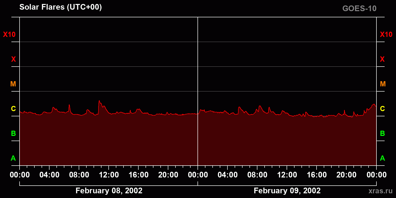 Chart of solar activity from Feb 08, 2002 to Feb 09, 2002