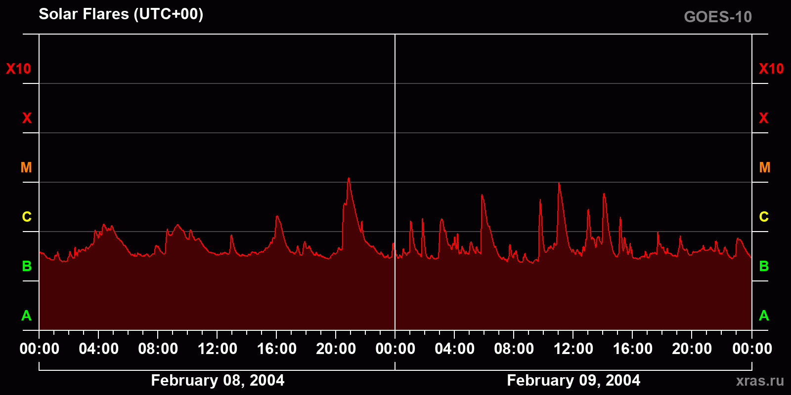 Chart of solar activity from Feb 08, 2004 to Feb 09, 2004