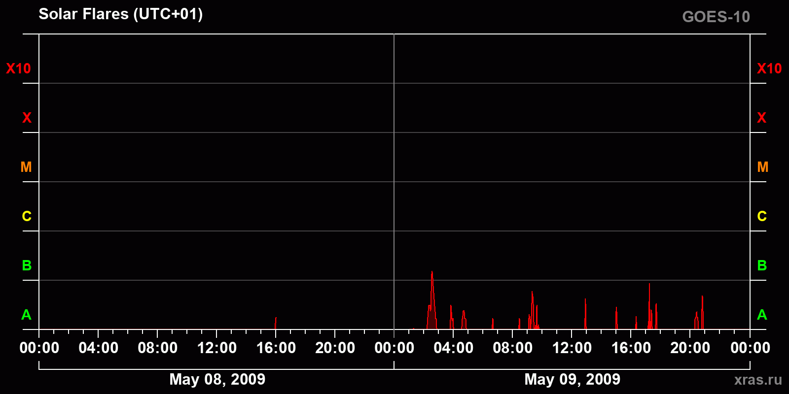 Chart of solar activity from May 08, 2009 to May 09, 2009