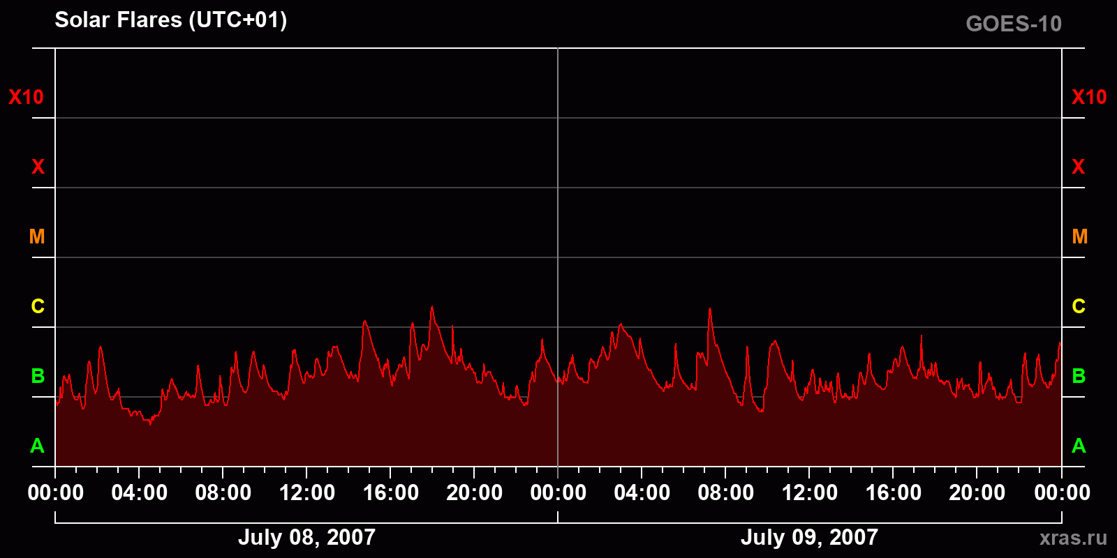 Chart of solar activity from Jul 08, 2007 to Jul 09, 2007