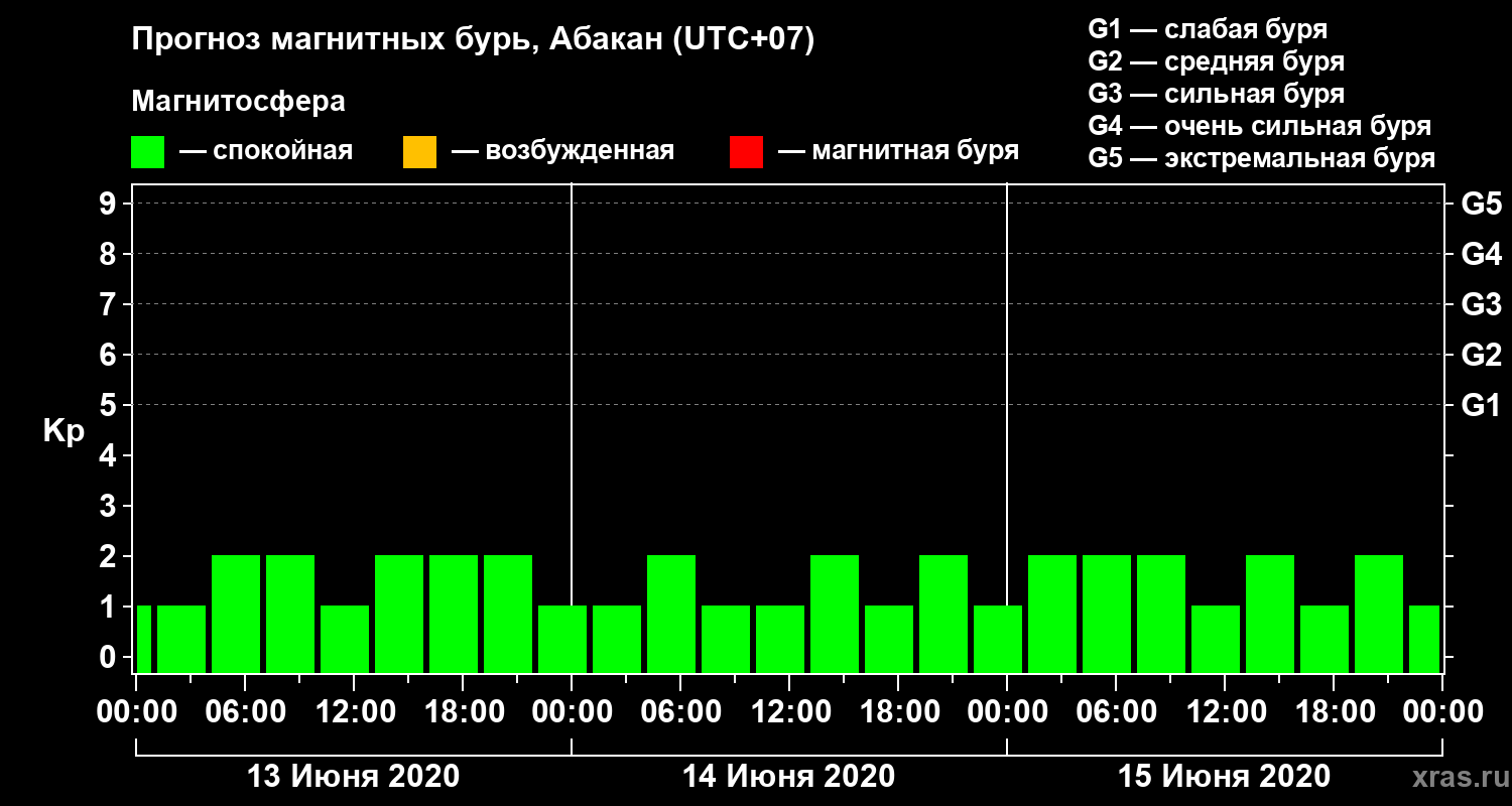 Прогноз магнитных бурь в Абакане на 13 июня 2020 года