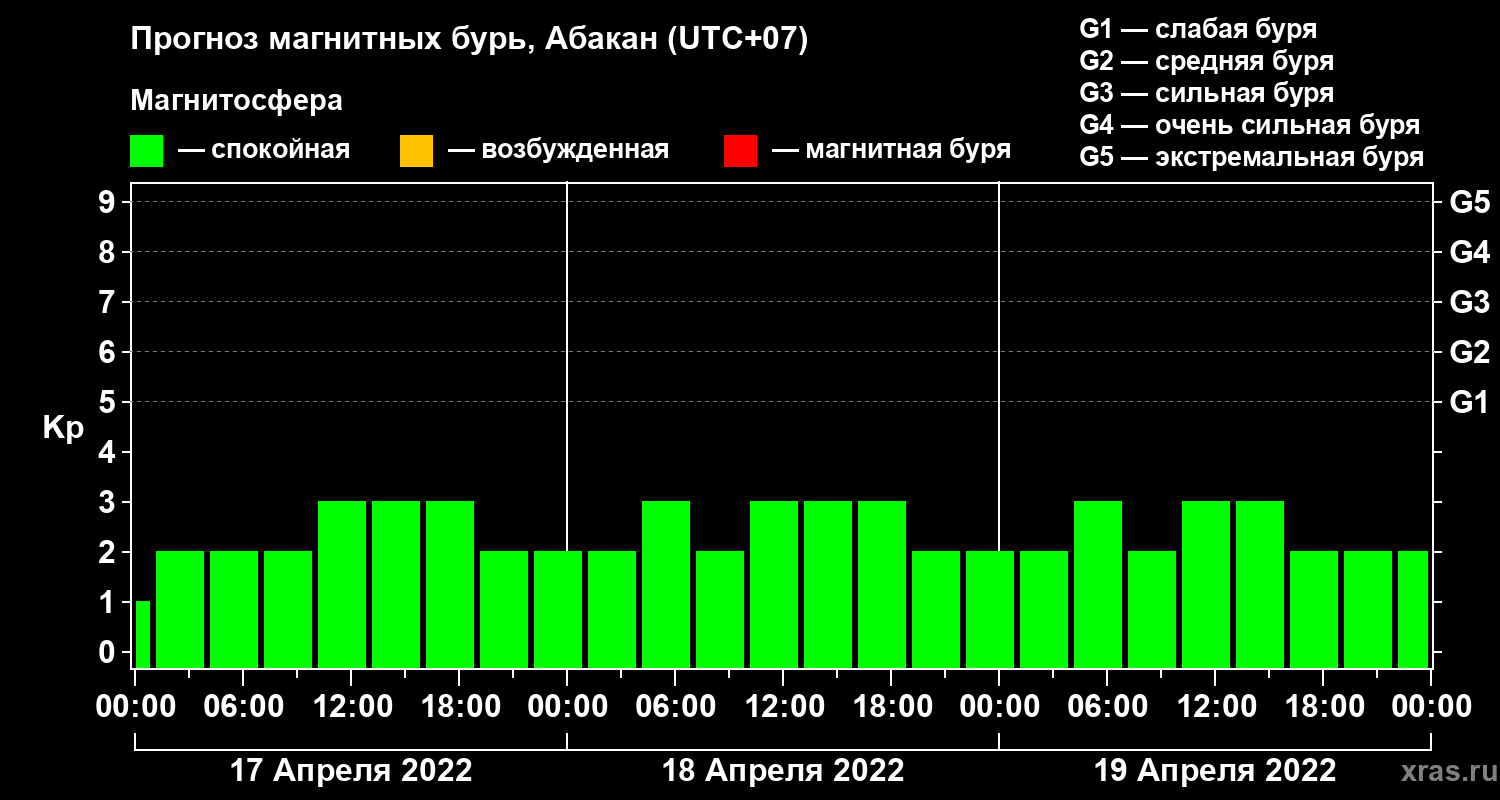Прогноз магнитных бурь в Абакане на 17 апреля 2022 года