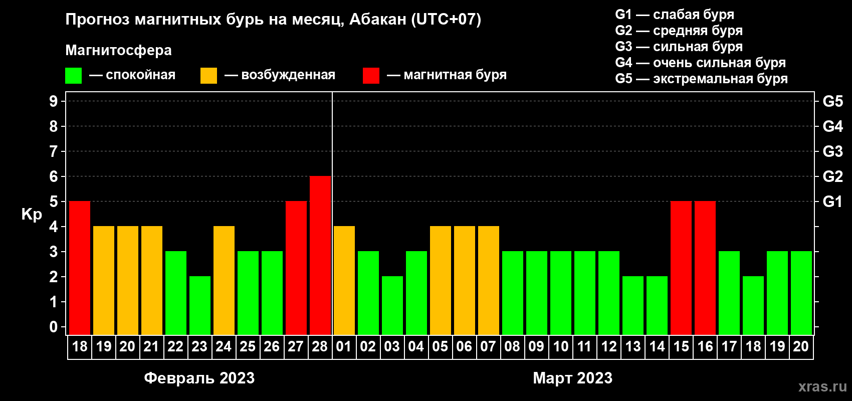 Прогноз магнитных бурь в Абакане на 18 февраля 2023 года