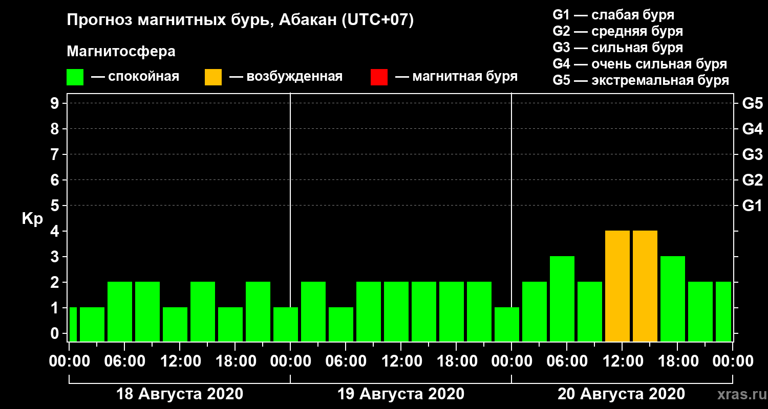 Прогноз магнитных бурь в Абакане — 18 августа 2020 года
