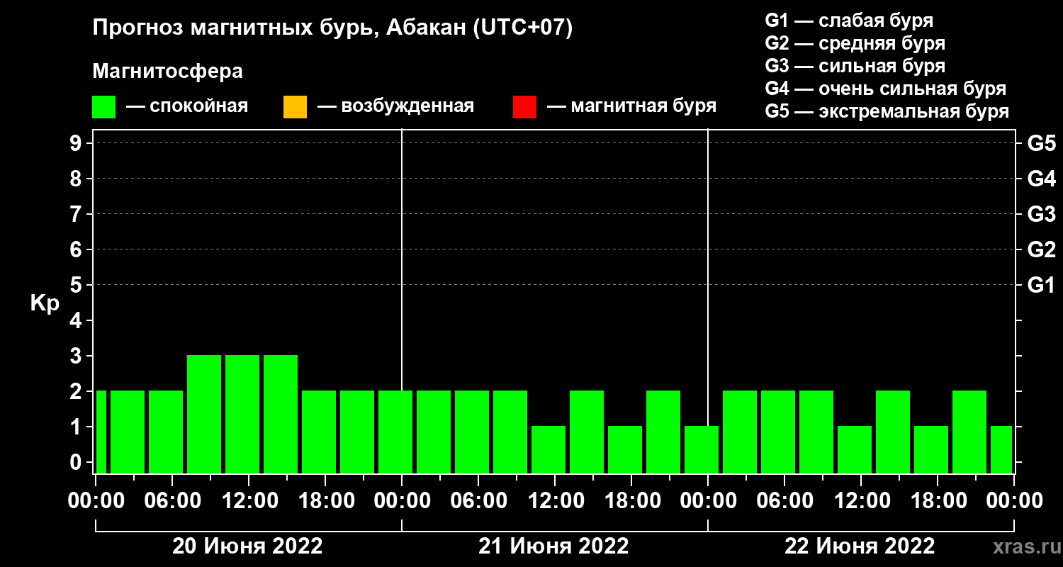 Прогноз магнитных бурь в Абакане на 20 июня 2022 года