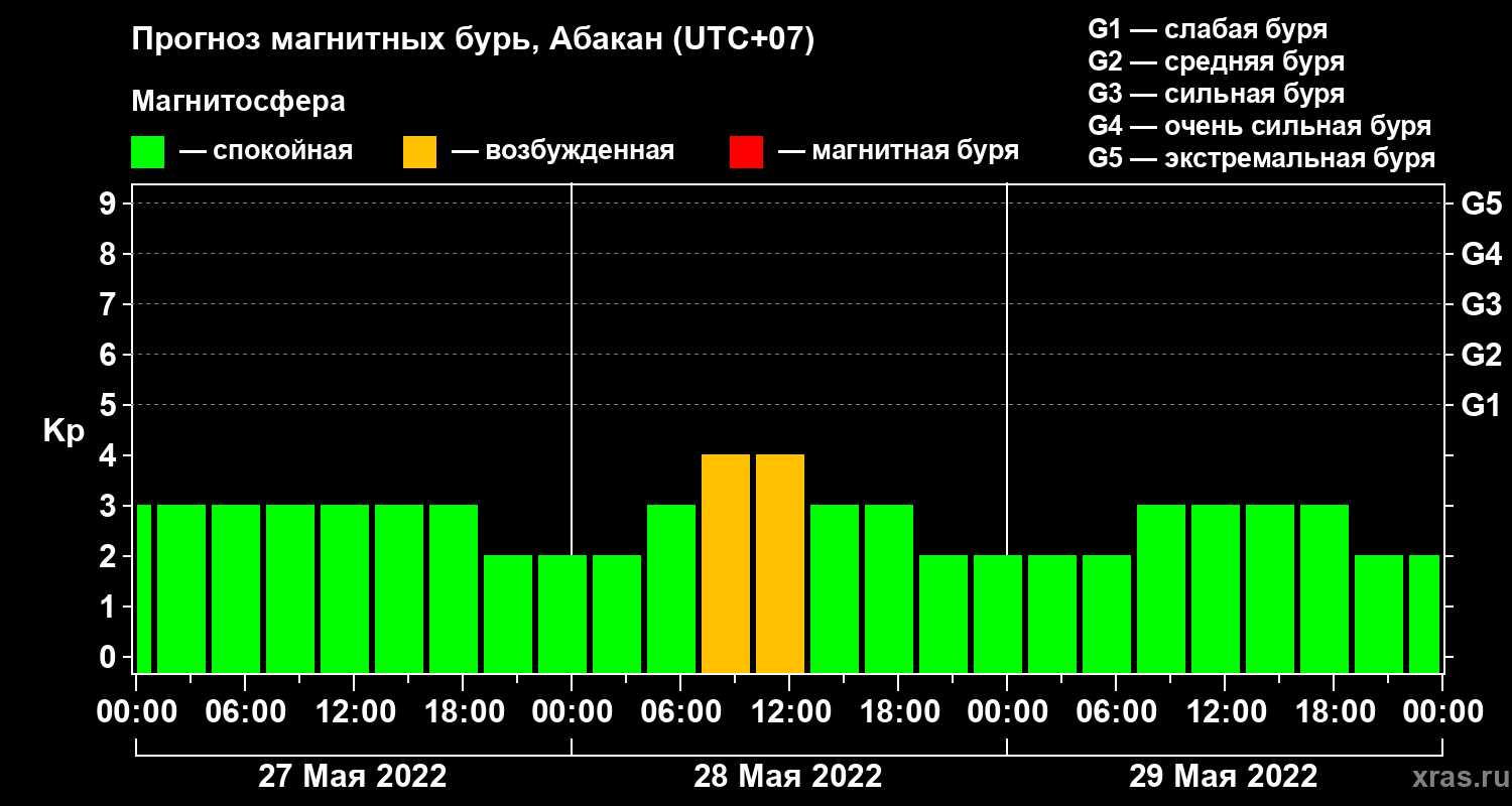Прогноз магнитных бурь в Абакане на 27 мая 2022 года