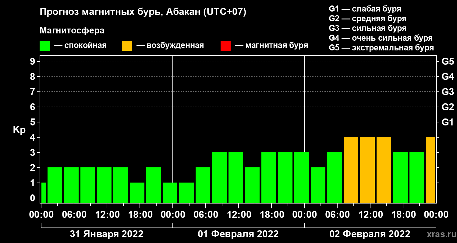 Прогноз магнитных бурь в Абакане на 31 января 2022 года
