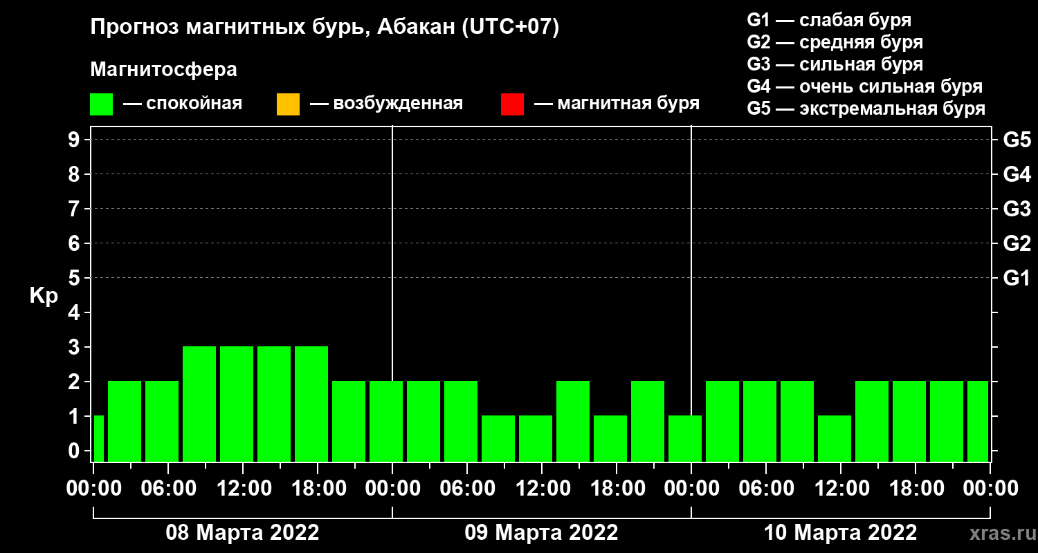 Прогноз магнитных бурь в Абакане — 8 марта 2022 года