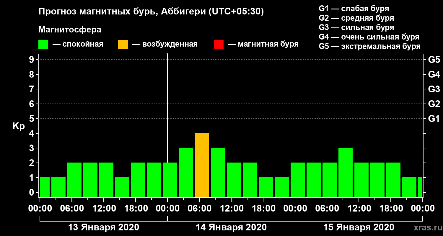 Прогноз магнитных бурь Аббигери — 13 января 2020 года