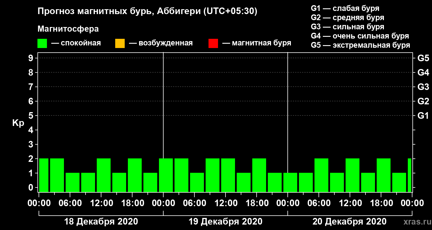 Прогноз магнитных бурь Аббигери на 18 декабря 2020 года