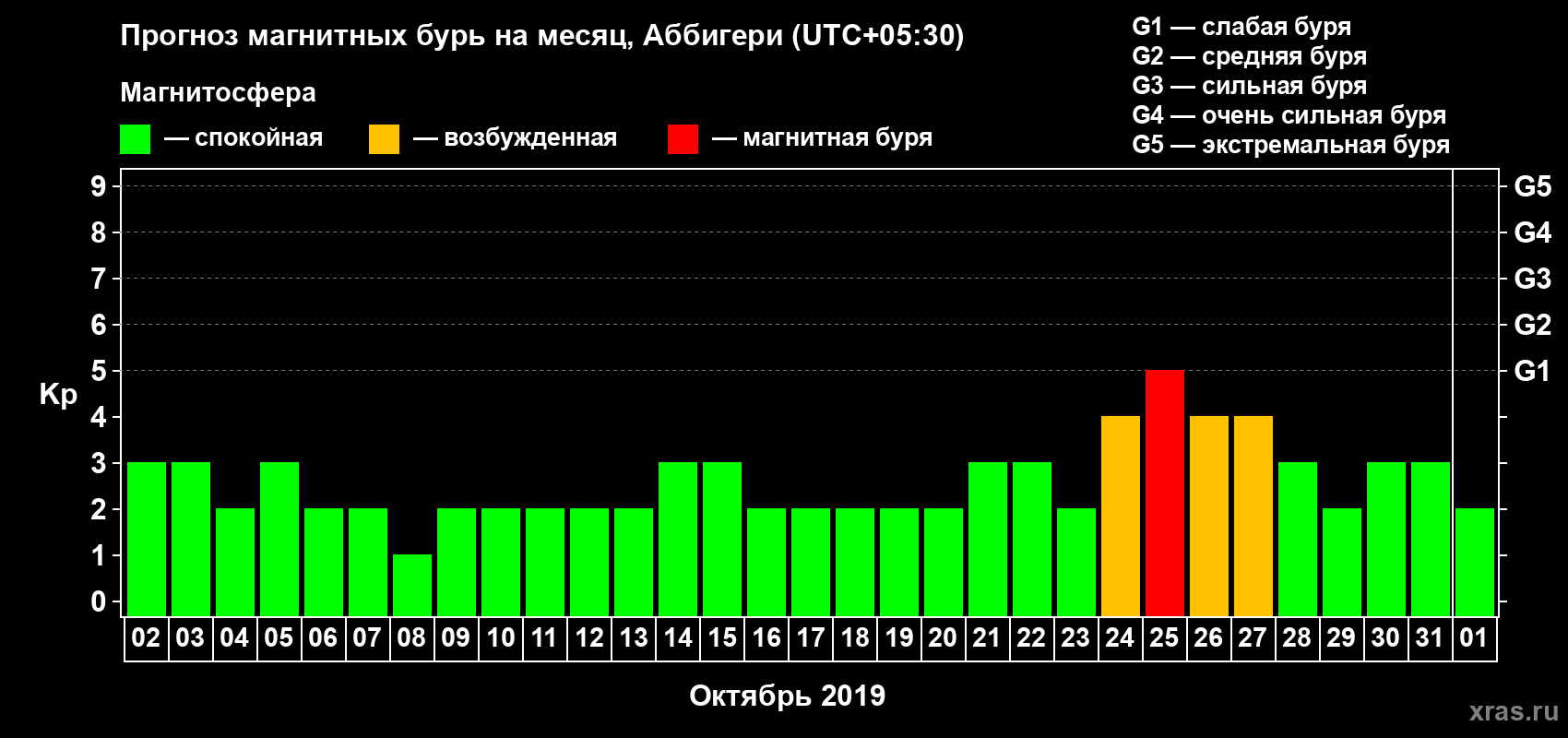 Прогноз магнитных бурь Аббигери — 2 октября 2019 года